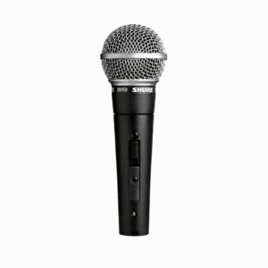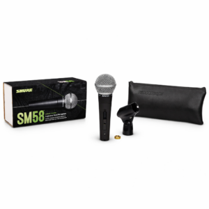 The legendary Shure SM58 vocal microphone is designed for professional vocal use in live performance, sound reinforcement, and studio recording. Its tailored vocal response for sound is a world standard for singing or speech.